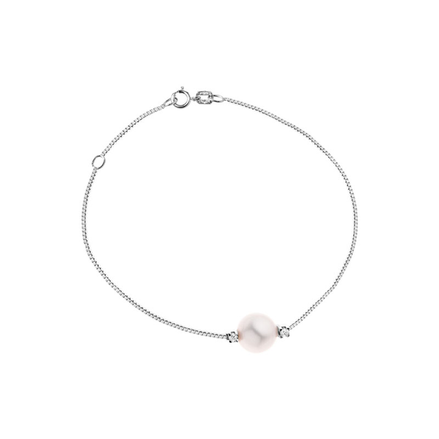 1,50g Argent 925 millièmes, Diamants de qualité HSI, perle de culture d'eau douce AA 8/9 mm, livré avec Certificat. Longueur 18 cm. Prix de vente conseillé : 649€
