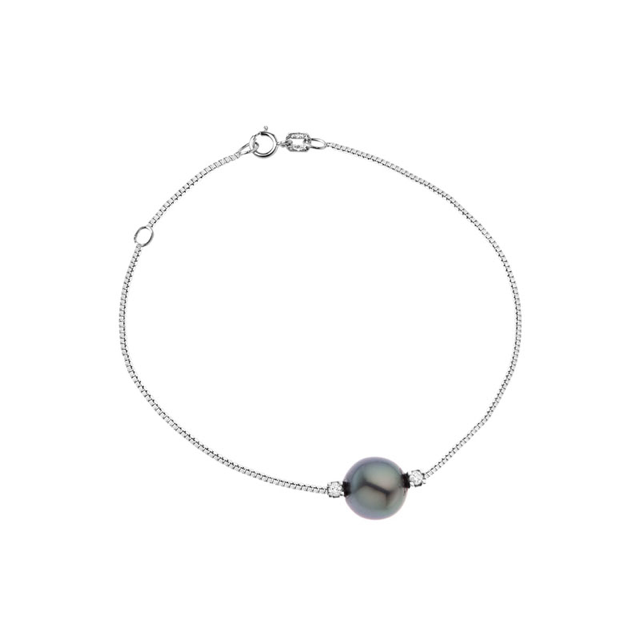 1,50g Argent 925 millièmes, Diamant de qualité HSI, perle de culture de Tahiti A 8/9 mm, livré avec Certificat. Longueur 18 cm. Prix de vente conseillé : 799€